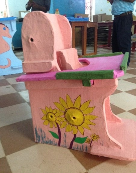 APT is a technology using engineering principles to transform recycled paper and cardboard materials into strong personally designed equipment such as furniture or adapted devices for children with impairment. The technic is an application to adapt to each person’s needs, in a low budget way with a big impact. The created devices are strong, useful, attractive and low-cost.