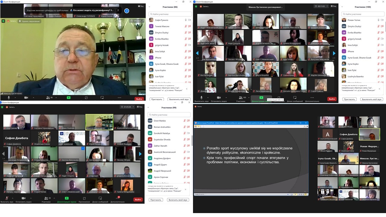 The scientific event took place on the ZOOM platform in the form of plenary and sectional meetings. The head of the organizing committee of the conference, Doctor of Pedagogical Sciences, Professor Mykola Lukyanchenko expressed special thanks to the co-organizers and participants of the conference, among whom were Ukrainian and foreign scientists: Khmelnytskyi National University; Prydniprovsk State Academy of Physical Culture and Sports; VIVES University of Applied Sciences (Belgium); University of Rzeszów (Poland), Lviv State University of Physical Culture named after I. Boberski, University of Physical Education and Sports named after Jendze Sniadecki in Gdańsk (Poland); Polish Society of Sciences, Ivano-Frankivsk National Medical University, Latvian Academy of Sports Education (Riga) and others.